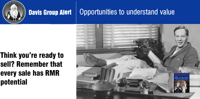 Davis Mergers and Acquisitions Group (DMAG) has represented many sellers who are more integrators than RMR companies. When a dealer interested in selling signs our Agreement, we analyze and evaluate their business to decide how we will go to market to achieve maximum dollars for our client.